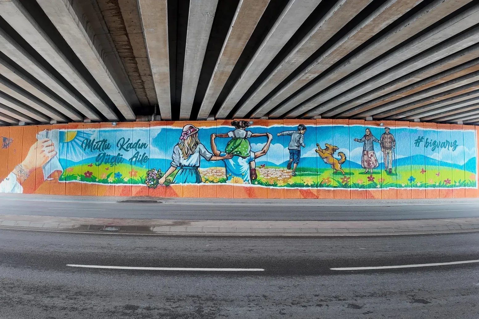 Kocaeli Büyükşehir Belediyesi, “2025 Aile Yılı” kapsamında kadına yönelik şiddete dikkat çekmek ve toplumsal farkındalığı artırmak amacıyla gerçekleştirdiği grafiti çalışmasını tamamladı. Alikahya Stadyum yolu üzerindeki köprü altı duvarlarında yapılan çalışma büyük beğeni topladı.