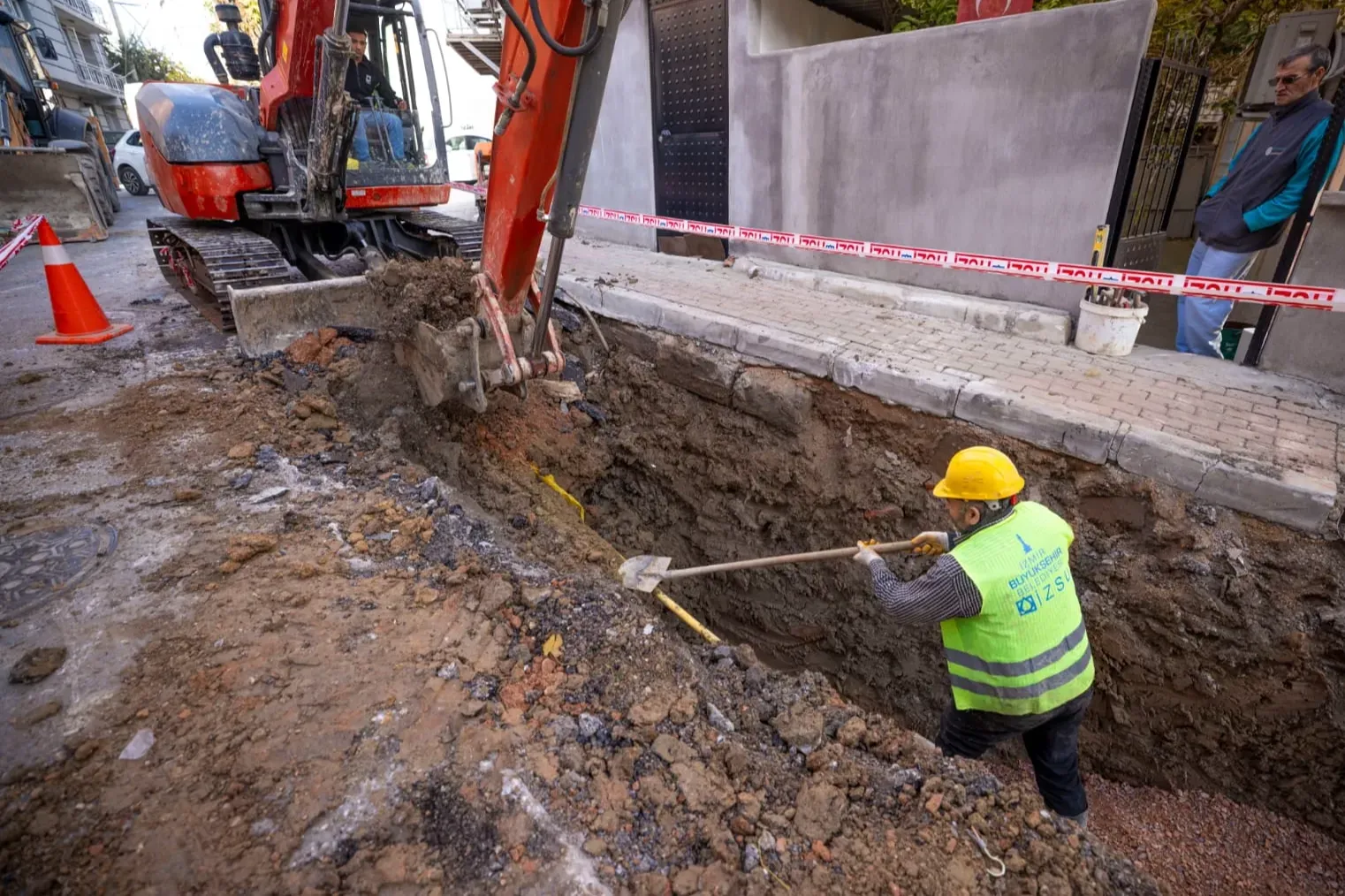 İZSU Genel Müdürlüğü tarafından yürütülen çalışmalar kapsamında, Sarıyer Mahallesi’nden geçen Dostluk Bulvarı güzergâhında 1,5 kilometrelik yeni yağmur suyu hattı inşa ediliyor. Mevcut altyapının yetersiz kaldığı noktalarda kanal hatları yenilenerek kapasitesi artırılıyor.