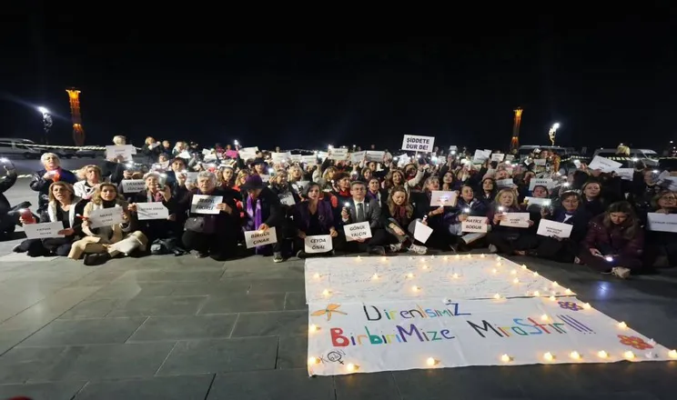 “Biz buradayız, yan yanayız. Kadınların özgürlüğü için, eşitlik için, adalet için sesimizi her koşulda yükseltmeye devam edeceğiz.”
