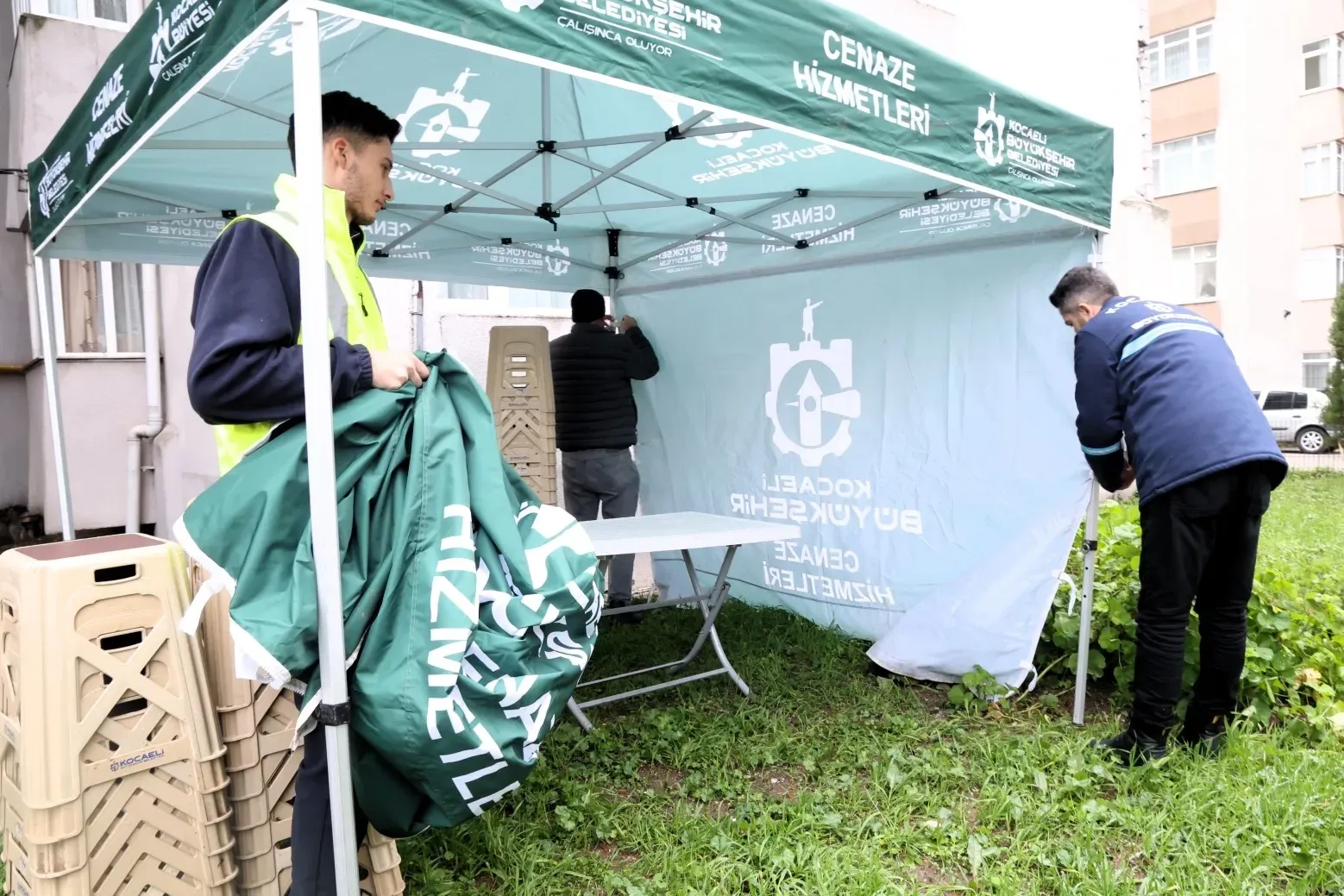 Kocaeli Büyükşehir Belediyesi, vatandaşları en acılı günlerinde yalnız bırakmıyor. Taziye evlerine çadır, masa ve sandalye desteğini sürdüren Büyükşehir ekipleri, acıları hafifleterek taziye ziyaretlerinin daha düzenli ve konforlu bir ortamda gerçekleştirilmesini sağlıyor.