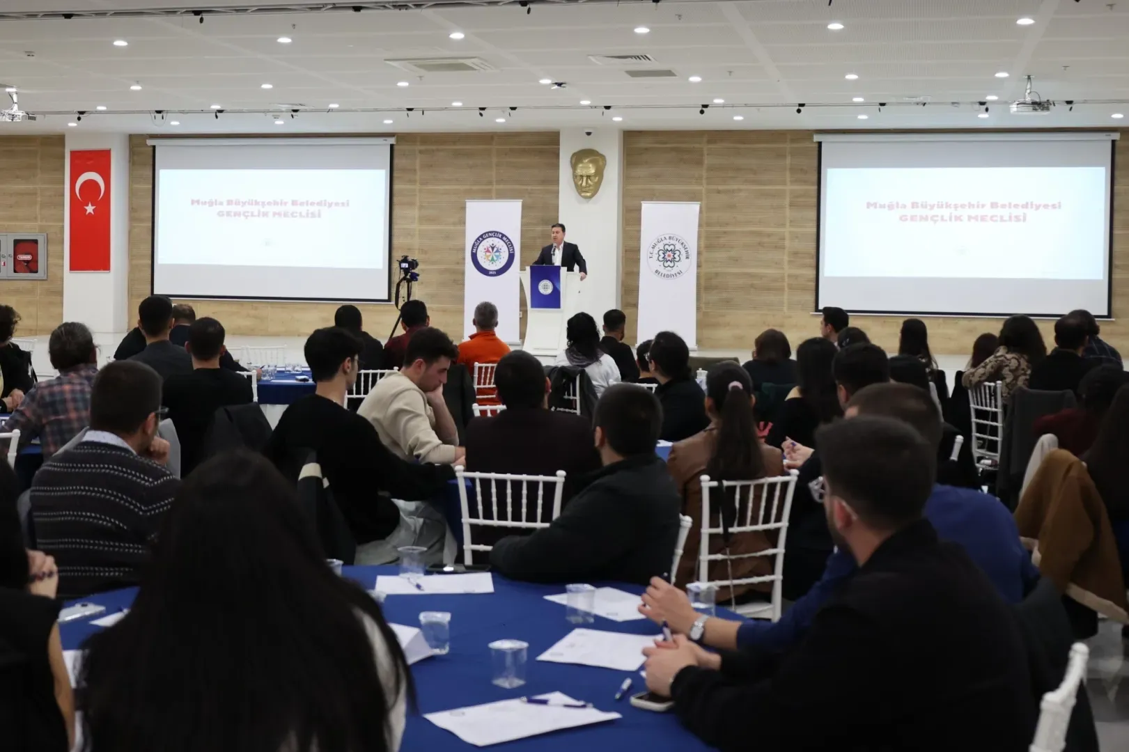 Programda konuşan Muğla Büyükşehir Belediyesi Genel Sekreteri Tayfun Yılmaz, Gençlik Meclisi’nin gençlerin yönetime katılımını güçlendirecek önemli bir yapı olduğuna dikkat çekerek, “70 üyeyle başlayan bu yapı, ilerleyen süreçte 700 üyeye ulaşmayı hedefliyor. Bu bizler için son derece heyecan verici” dedi. Buluşmaya katılan Muğla Büyükşehir Belediye Başkanı Ahmet Aras ise gençlere hitaben yaptığı konuşmada, “Gençlik Meclisi’nin tamamen demokratik ve eşitlikçi bir yapıya sahip olmasını istiyoruz. Sizlerin ürettiği her fikirde süreci kolaylaştırmak ve destek olmak bizim sorumluluğumuz. Değişimi buradan başlatacağız” ifadelerini kullandı.