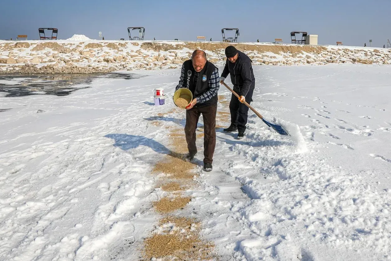 Bu kapsamda Van Gölü Sahil Yolu ve Van Kalesi çevresinde kuşların yoğun olarak bulunduğunu göz önünde bulunduran ekipler, kuşlar için sahil kenarına ve Van Kalesi çevresindeki sazlıklara buğday bıraktı.
