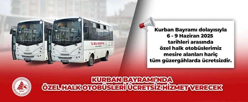 Bolu’da, Kurban Bayramı süresince toplu taşıma araçlarının mesire alanları hariç ücretsiz hizmet vereceği duyuruldu.