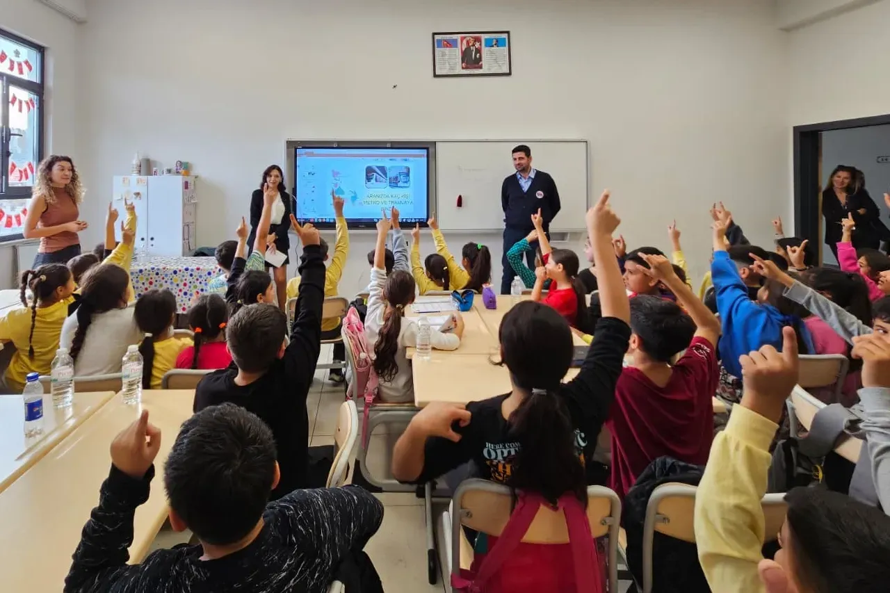 “Gözünüz Metro ve Tramvayda Olsun” başlıklı sunumda metro ve tramvayı kimlerin kullandığı, araçlara biniş kuralları ve yolculuk sırasında dikkat edilmesi gereken güvenlik adımları öğrencilere aktarıldı. Programa bir vatman da katılarak öğrencilerin sorularını yanıtladı. Eğitim programının farklı okullarla devam edeceği bilgisi verildi.